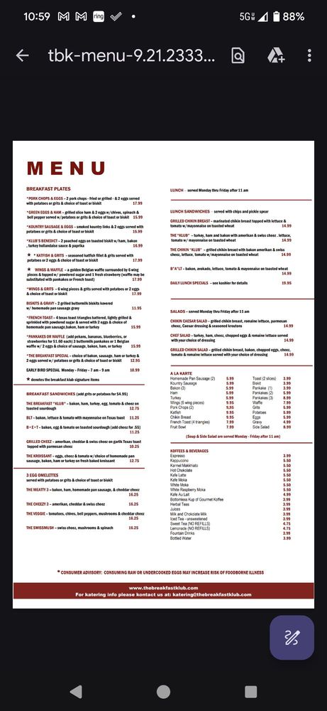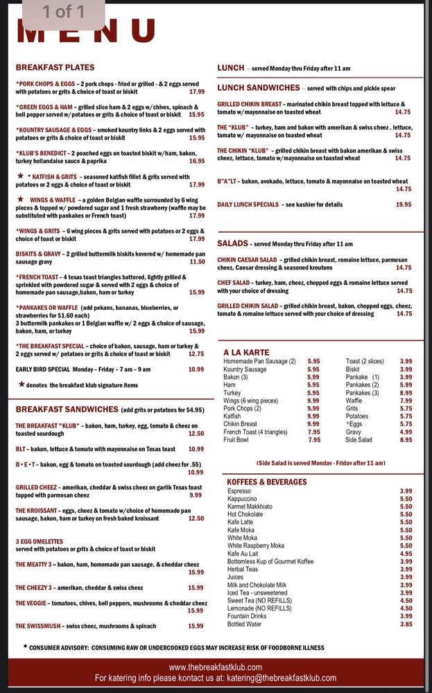 The Breakfast Klub in Houston, TX, is a beloved Southern breakfast and brunch spot with a diverse menu offering. Known for their signature dishes like chicken and waffles, the restaurant provides a unique dining experience with excellent food and service. Customers rave about the well-seasoned fried chicken, pillowy soft waffles, and generously portioned meals. Despite occasional service hiccups, the overall ambiance and hospitality stand out. The restaurant's popularity leads to long lines, but efficient systems keep things moving smoothly. Whether you're a local or a visitor, The Breakfast Klub is a must-visit for top-tier, fresh food that caters to all tastes. Enjoy the unique flavors and warm hospitality at this bustling and iconic breakfast hotspot.