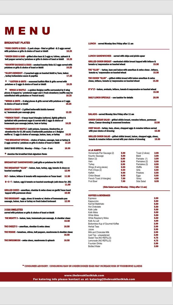 Monday - Wings w/Red Beans & RiceTuesday - Grilled Chikin Penne PastaWednesday - Katfish w/Krawfish Etouffee Thursday - Chikin Fried ChikinFriday - Krawfish Fettucini w/Grilled Shrimp